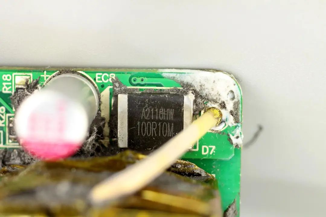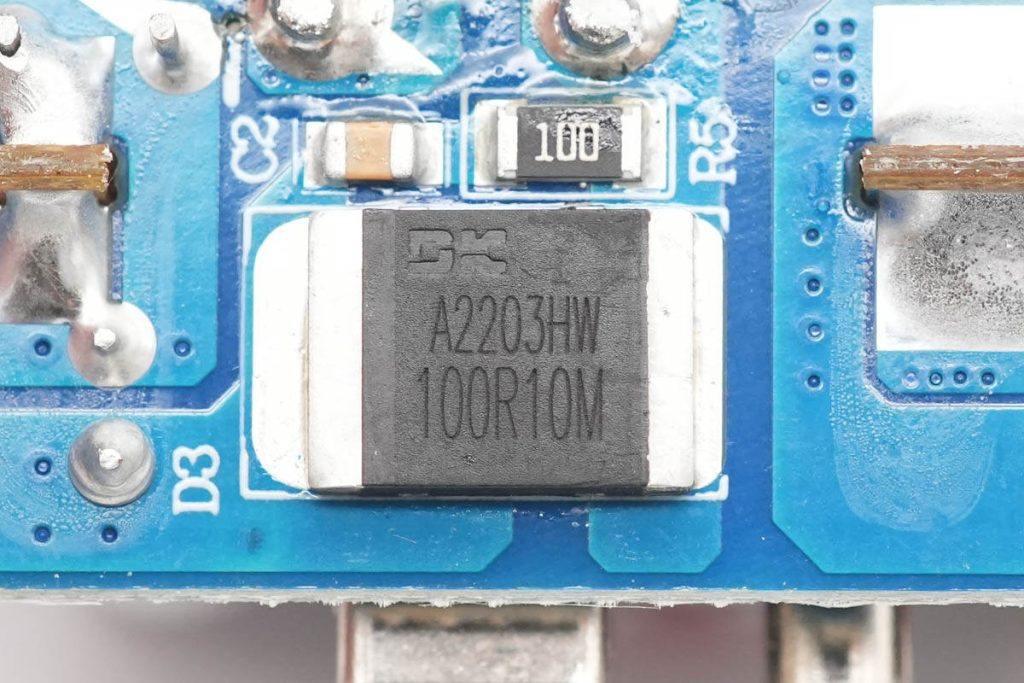 同步整流芯片來自東科,絲印100R10M,實(shí)際型號(hào)為DK5V100R10M,是一款零外圍的同步整流芯片,內(nèi)置100V耐壓,10mΩ導(dǎo)阻的同步整流管,支持CCM,DCM和QR運(yùn)行模式,可直接替代肖特基二極管,提升電源轉(zhuǎn)換效率。