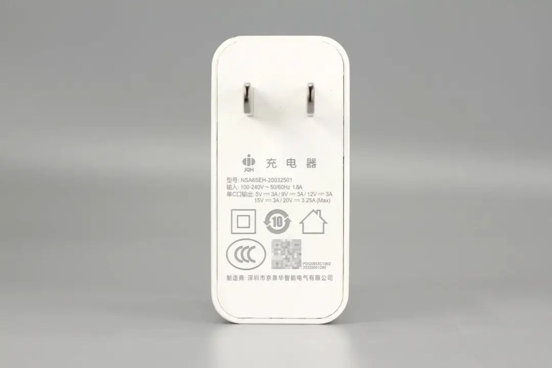 聯(lián)想這款充電器采用白色機(jī)身,固定插腳,標(biāo)準(zhǔn)的配機(jī)充電器設(shè)計(jì)。充電器支持65W PD快充,得益于通用的USB PD接口,這款充電器除了為配套的投影儀供電外,還能為筆記本供電,十分方便。