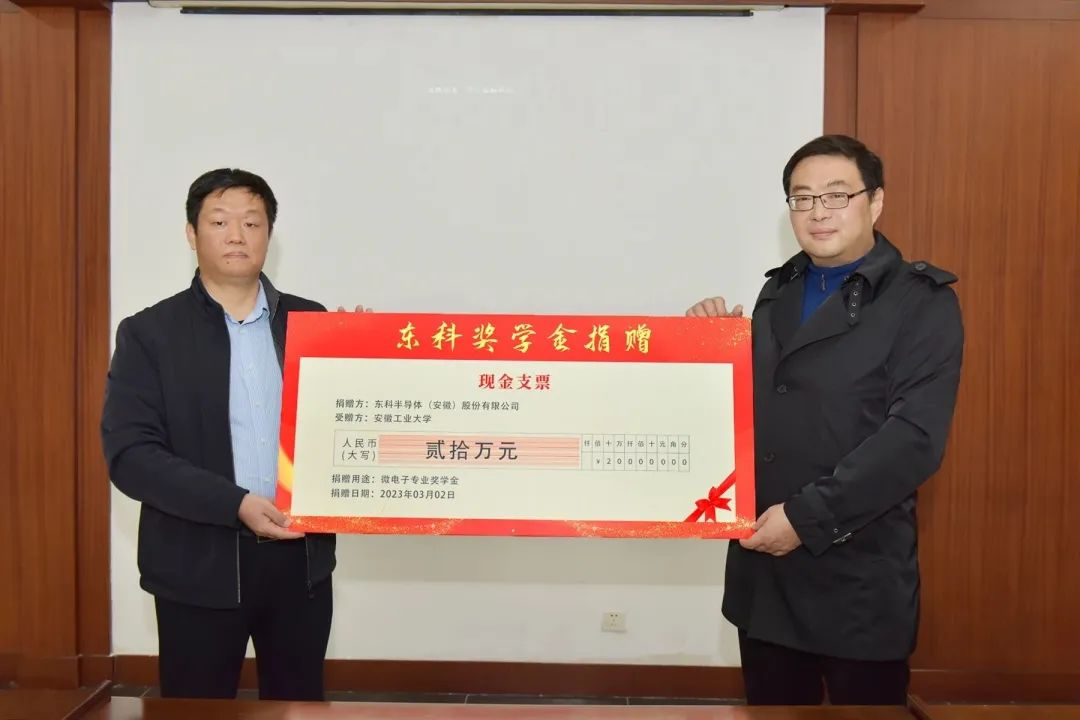 2023年3月8日下午,東科半導(dǎo)體(安徽)股份有限公司和安徽工業(yè)大學(xué)共建聯(lián)合實(shí)驗(yàn)室揭牌儀式暨東科專業(yè)獎(jiǎng)學(xué)金捐贈(zèng)儀式在安工大佳山校區(qū)隆重舉行。