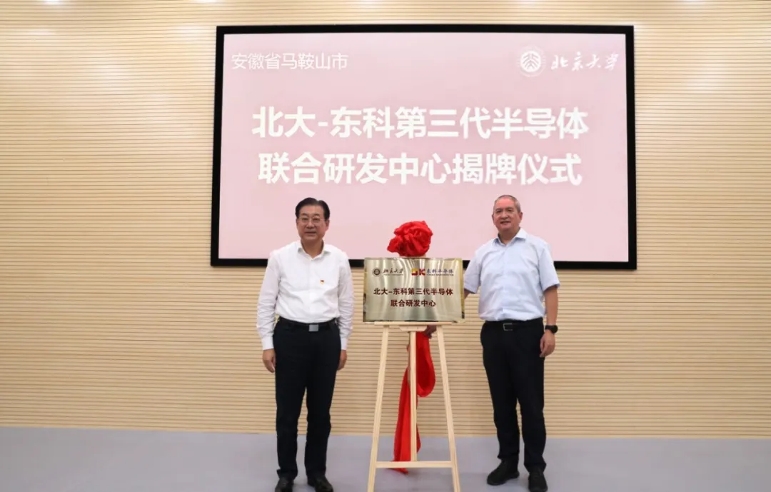 9月15日,東科半導(dǎo)體(安徽)股份有限公司與北京大學(xué)共同組建的第三代半導(dǎo)體聯(lián)合研發(fā)中心正式揭牌成立。由北京大學(xué)科學(xué)研究部謝冰部長及馬鞍山市委書記袁方共同為北大-東科聯(lián)合研發(fā)中心揭牌。