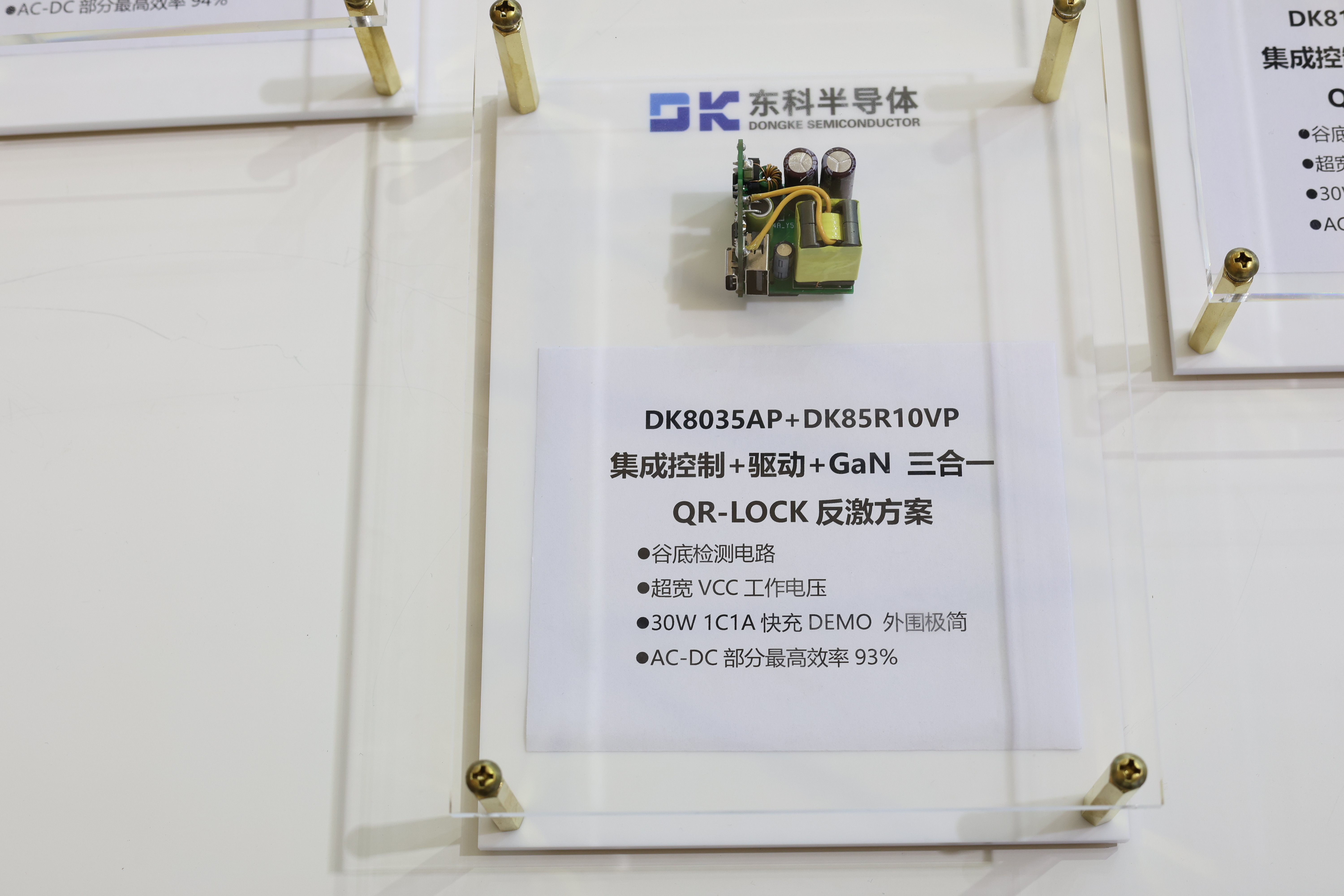 在氮化鎵AC-DC電源管理芯片領(lǐng)域,東科還帶來了全合封QR-LOCK AC-DC 電源管理芯片DK0XXG/DK80XXAP系列。產(chǎn)品輸出功率覆蓋12-75W。支持250KHz開關(guān)頻率,待機(jī)功耗低于50mW,內(nèi)置高低壓輸入功率補(bǔ)償電路。